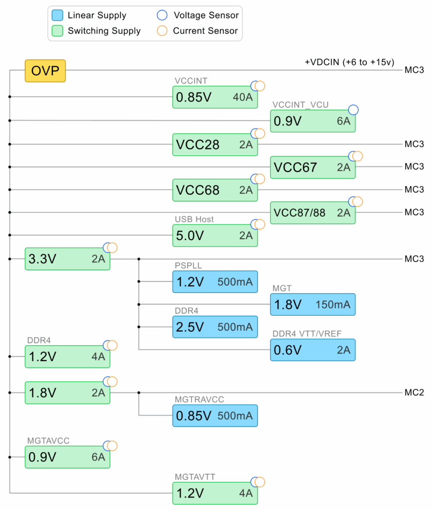 | COMPONENT(S) | 0.85 V | 0.90 V | 0.90 V | 1.2 V | 1.2 V | 1.8 V | 3.3 V | VCCO_28 | VCCO_67 | VCCO_68 | VCCO_87_88 |